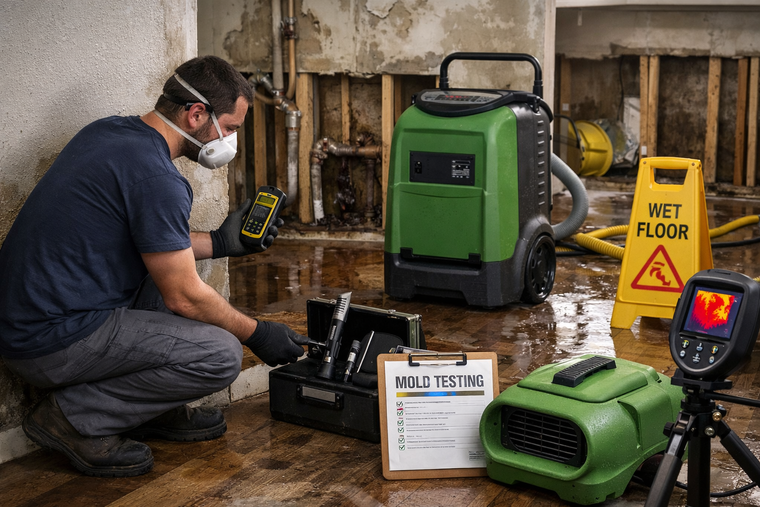 - Mold testing to confirm affected areas